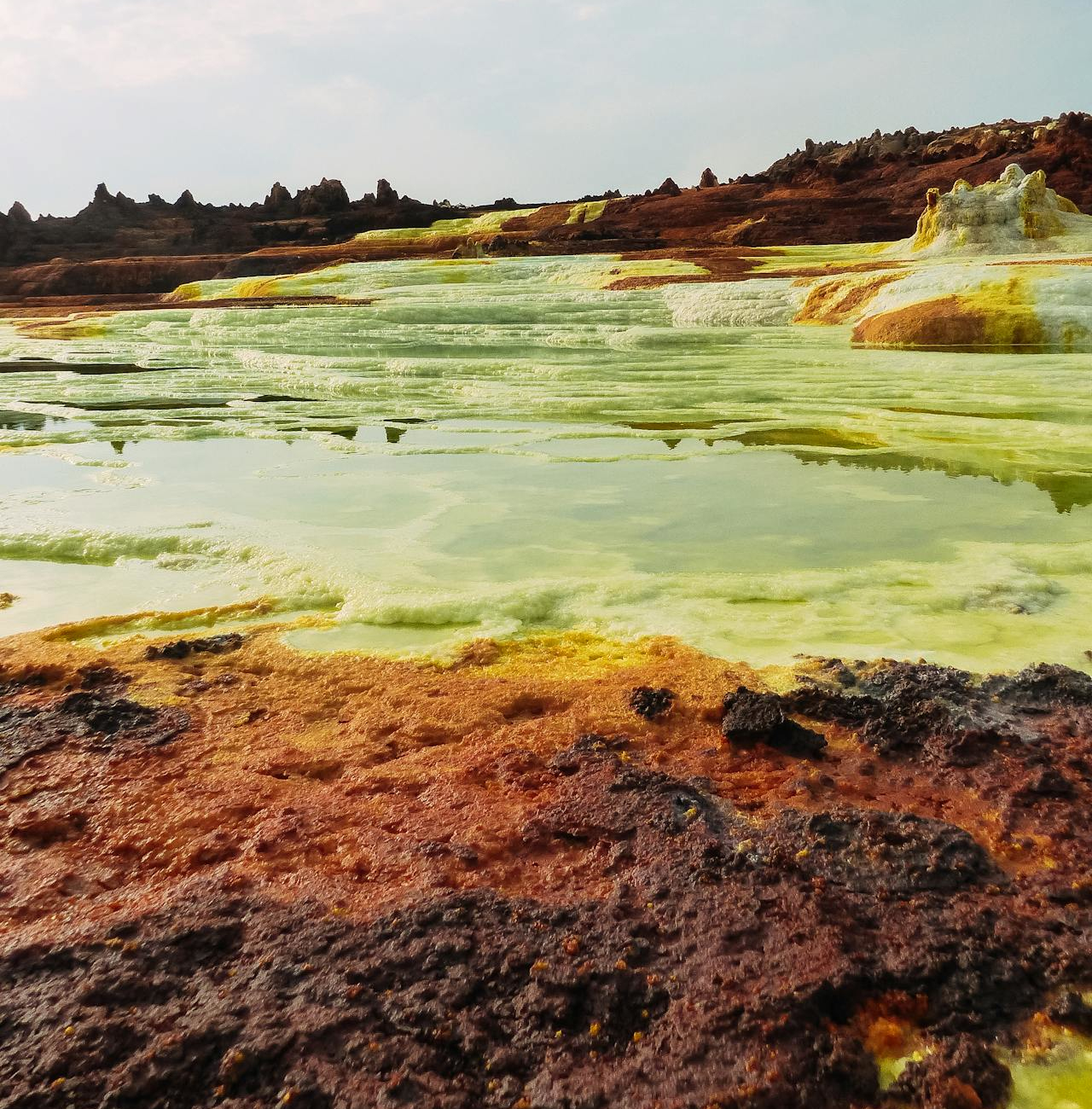 This colourful, alien-like landscape is one of the lowest and hottest places on Earth. With bubbling lava lakes, salt flats, and bright yellow sulfur springs, it feels like visiting another planet.